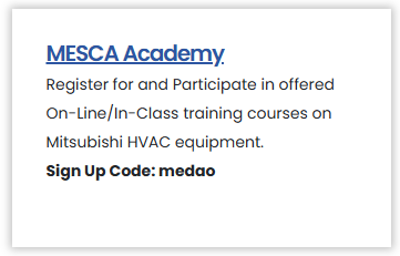 Note: There are several other courses in the MESCA Academy that are also very useful to help familiarize salespeople and technicians with the application and installation of Mitsubishi HVAC systems.